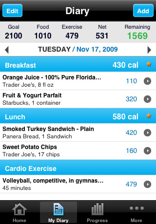 Diary screenshot from the iPhone app (taken from MFP/mobile page):