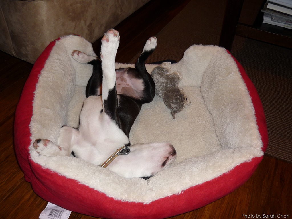 Oh, and while I was baking these treats, our puppy was sleeping like a little angel in her bed. Although, not sure that her position would’ve been that comfortable. Hmm..