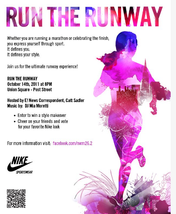 On top of that, I decided to enter a random drawing to participate in the first-ever Nike Run the Runway event. Here are the details from the site: