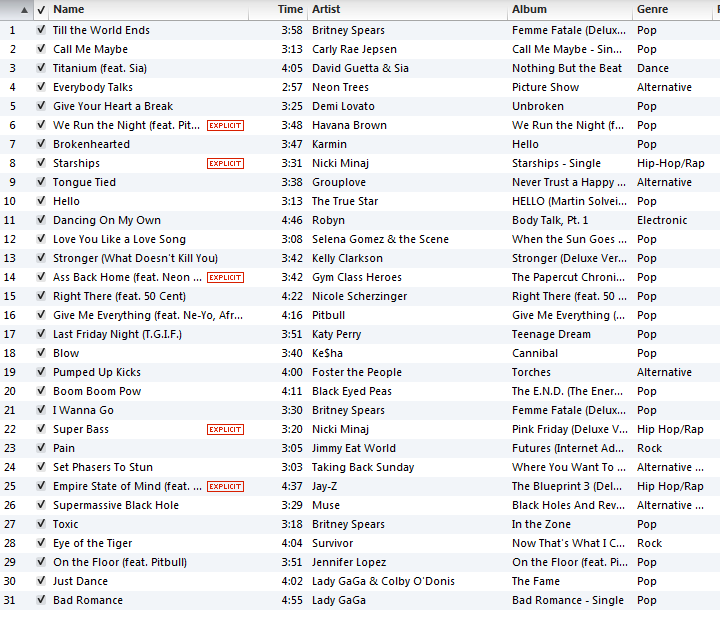 I leave you with a completely re-vamped running playlist for tomorrow’s race. Includes about 10 new songs added in. Let me know your thoughts on this list. Do you have any favorite must-have running songs that I should add to my collection? I noticed that I have a strong affinity for upbeat female pop singers. It’s just what gets me pumped up and going, I suppose!