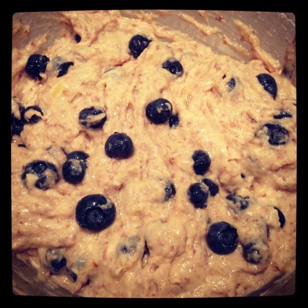 The batter, filled with plump juicy blueberries, made my mouth water.