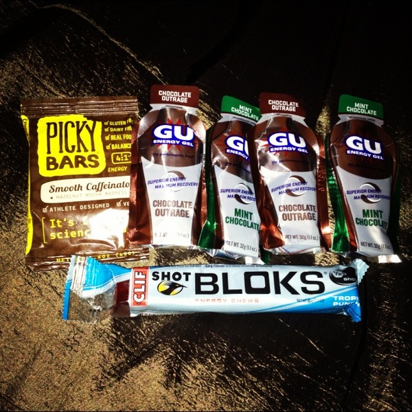 The fuel that I packed into the vest included four Gu’s in Chocolate Outrage and Mint Chocolate, Picky Bar in Smooth Caffeinator, and Clif Shot Bloks.
