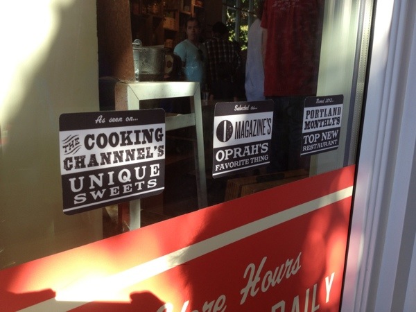There was a long wait, but on a hot sunny post-race day in Portland, this was exactly what I needed. Joe and I got the Freckled Woodblock Chocolate while the girls shared an ice cream flight. While I wish I was double-fisting ice cream cones, one was for Joe. 😉