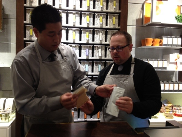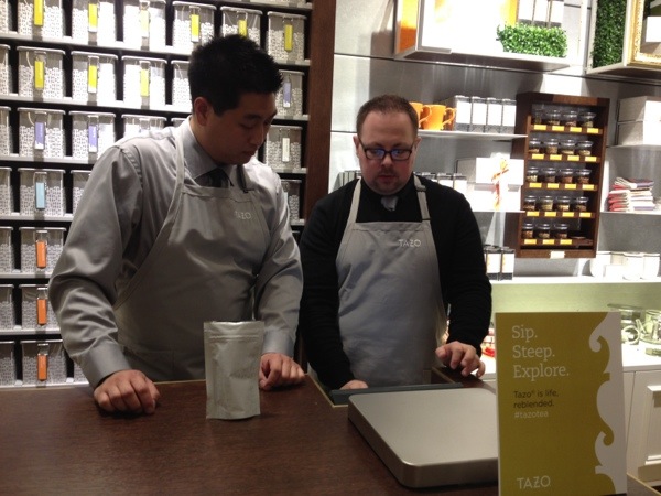 In addition, the store features more than 80 loose-leaf teas and a very cool blending station. This is a tea tree that customers can use to sniff and decide on their own custom tea blend. Or, the super nice Tazo experts will help make the decision.