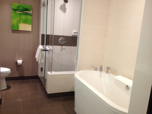 We arrived to our hotel, the Vdara, and were very impressed by the property and our rooms. Love that this suite including our own separate living room, dining area, and a gorgeous bedding and bathroom section. Love when hotels have nice stand-up showers and a separate bathtub, even though I never take baths. Absolutely gorgeous!