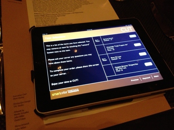 Check out this fancy ordering process specifically for beverages. The iPad contained the complete wine, cocktail, and beer menu and all you need to do is select the drinks, add to the order, and the waitstaff arrive moments later. Wow. Is this the future of the restaurant industry? Very cool.