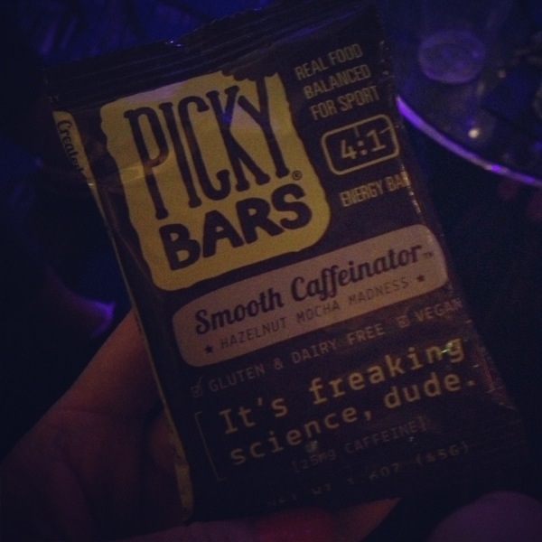 Right before the race, I had some Honey Stinger chews along with my favorite bar — Picky Bar in Smooth Caffeinator. Mmm, so good.