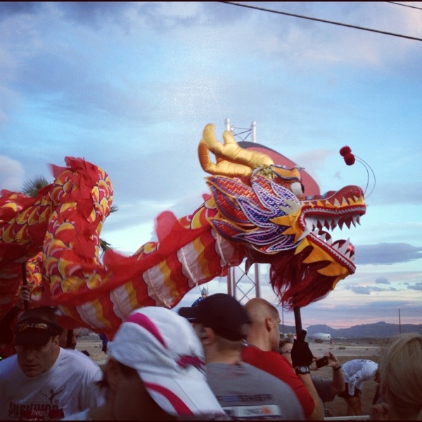 Right before the race started, the PF Chang’s relay team of runners carrying the dragon during the race made its way through. Very cool.