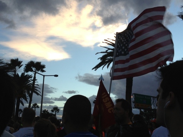 Once it was about 30 minutes until race start, Sarah and I headed over to the corrals. I headed to corral 3. With only 30 minutes to go, was surprised there weren’t tons of people crowding around yet.