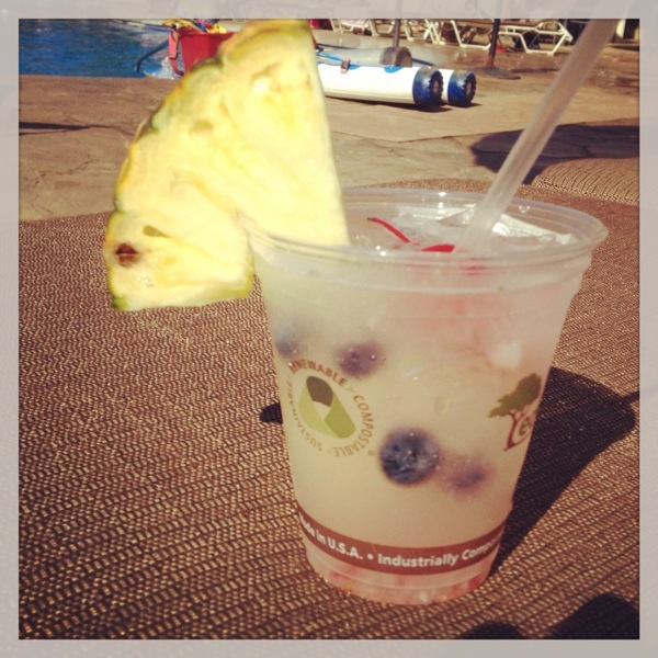It was time for more pool lounging for a couple hours before our first wedding planning meeting of the trip with our planner. At the pool, I had a refreshing “skinny” cocktail consisting of Stoli blueberry vodka, strawberries, blueberries, and lemonade. Super refreshing in the heat and less than 100 calories. Wow.