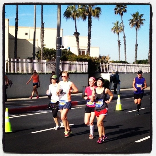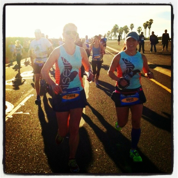 Into the first few miles, my Oiselle teammate, name & outfit twinsie, Sarah, ran up to me. Check out her blog recap of the race. I was in pain already a few miles in and waved her off to keep on going. There was no way, in my mind and body, that I’d be able to keep up with the way my shins wanted to keep me down. Picture snapped by Sheila and Instagrammed by me.