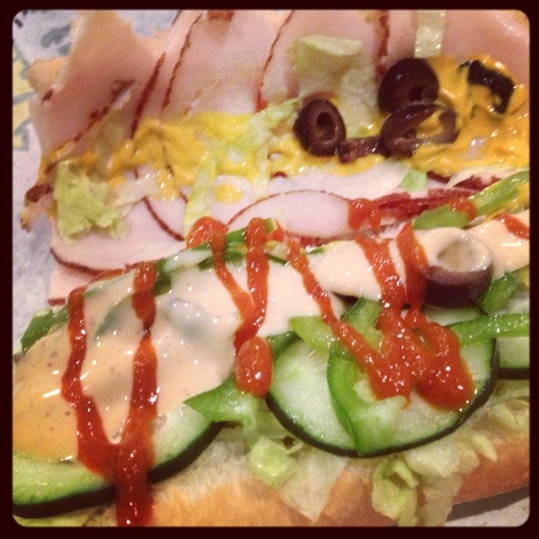 Of course, Joe and I finished off our romantic Valentine’s Day with Subway for dinner. Subway with Cafe Yumm sauce and Sriracha totally ups the flavor.
