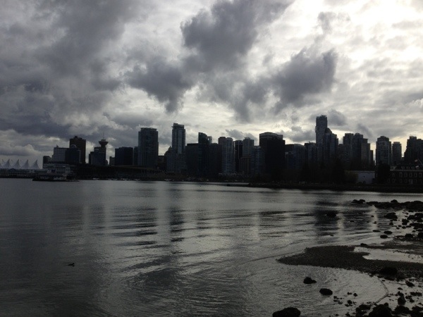 Sunday morning, it was time to check out and explore the city one last time before heading back to Seattle. The weather wasn’t as nice as Saturday, but luckily the rain stayed away. Ominous clouds shadowing the Vancouver waterfront, though.