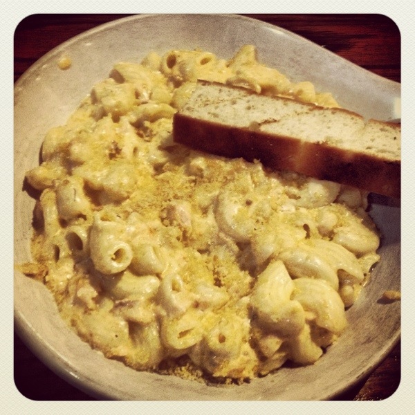 Delicious salmon mac and cheese from the Lost Roo. Unpictured: they had fantastic tots!