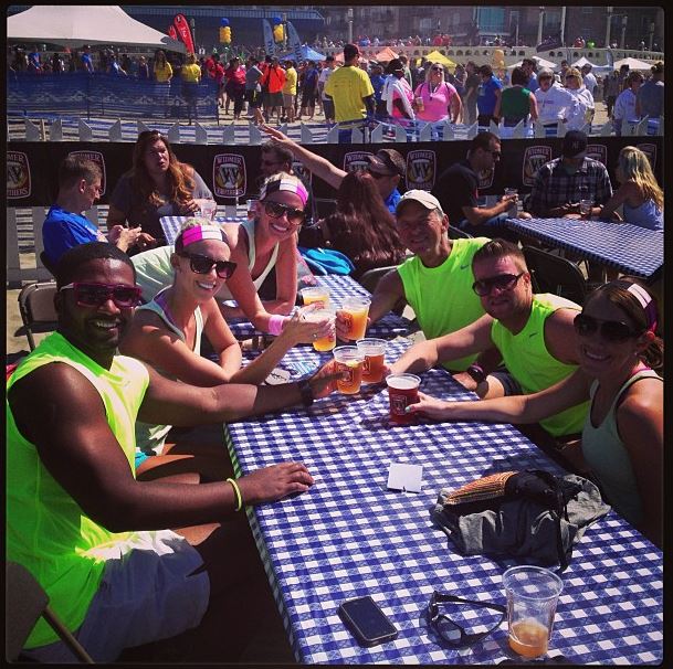 Here’s a shot of Van 1 enjoy some ice cold brew at the finish line waiting for us to finish: