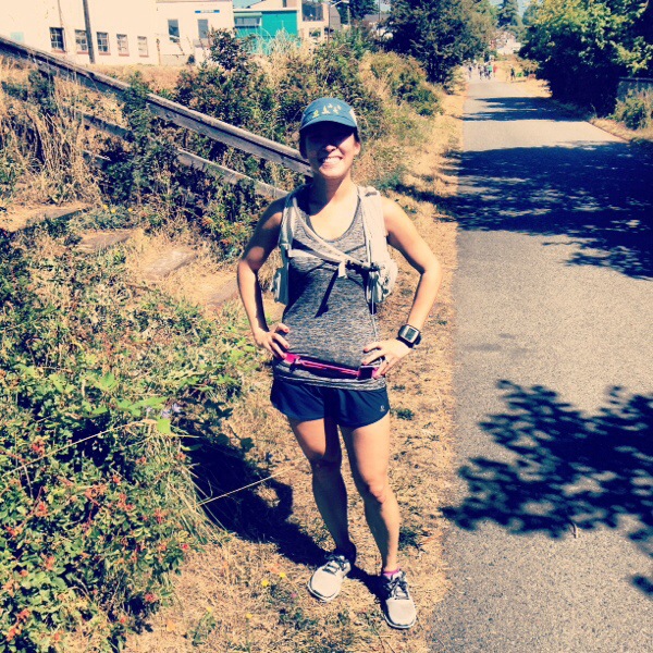 Post-long run rocking one of my favorite Oiselle outfits: Superfly Cap, Winona Tank, Roga Shorts.