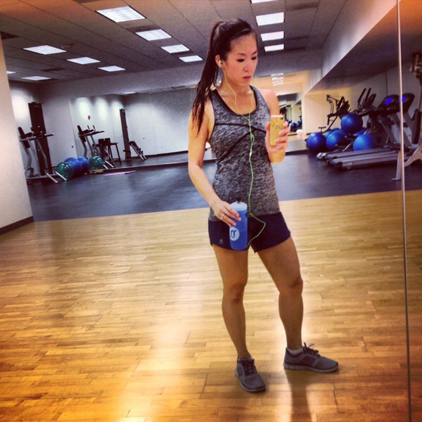 After another super sweaty speed workout on the treadmill at home.