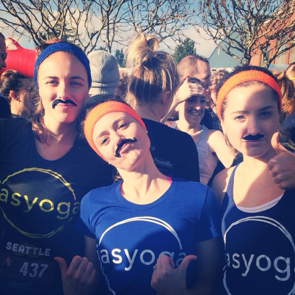 Saw some awesome friends at the race start. Clockwise from the top left – Zoe, an awesome mustache duo, Becky, and Erin of Jasyoga.