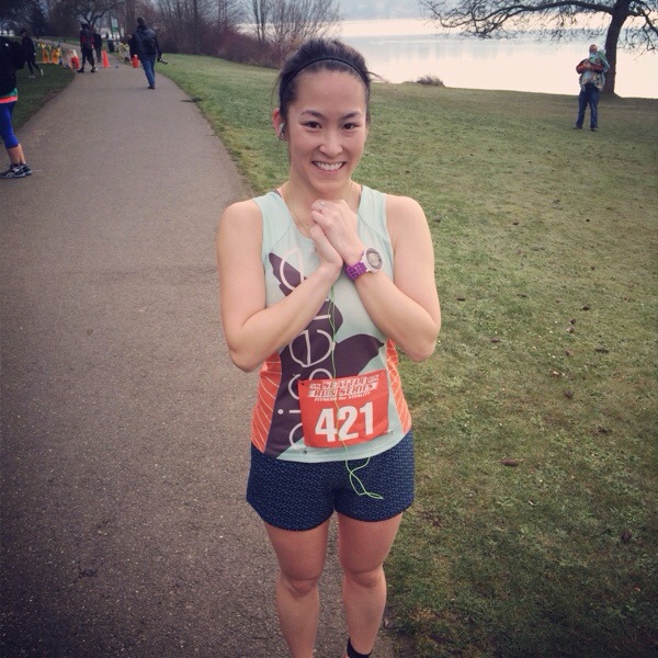 It was my first time running a race at Seward Park and, with my calf injury and limited experience in racing short distances like 5K, I was a bit worried about what would happen. However, Coach Kevin reassured me that being a little nervous is normal but that I had a good training base under my belt, so nerves shouldn’t get the best of me. Also, gave me advice that if my calf bothered me, it’d be best to stop during the race. No need to be a hero. Good advice.